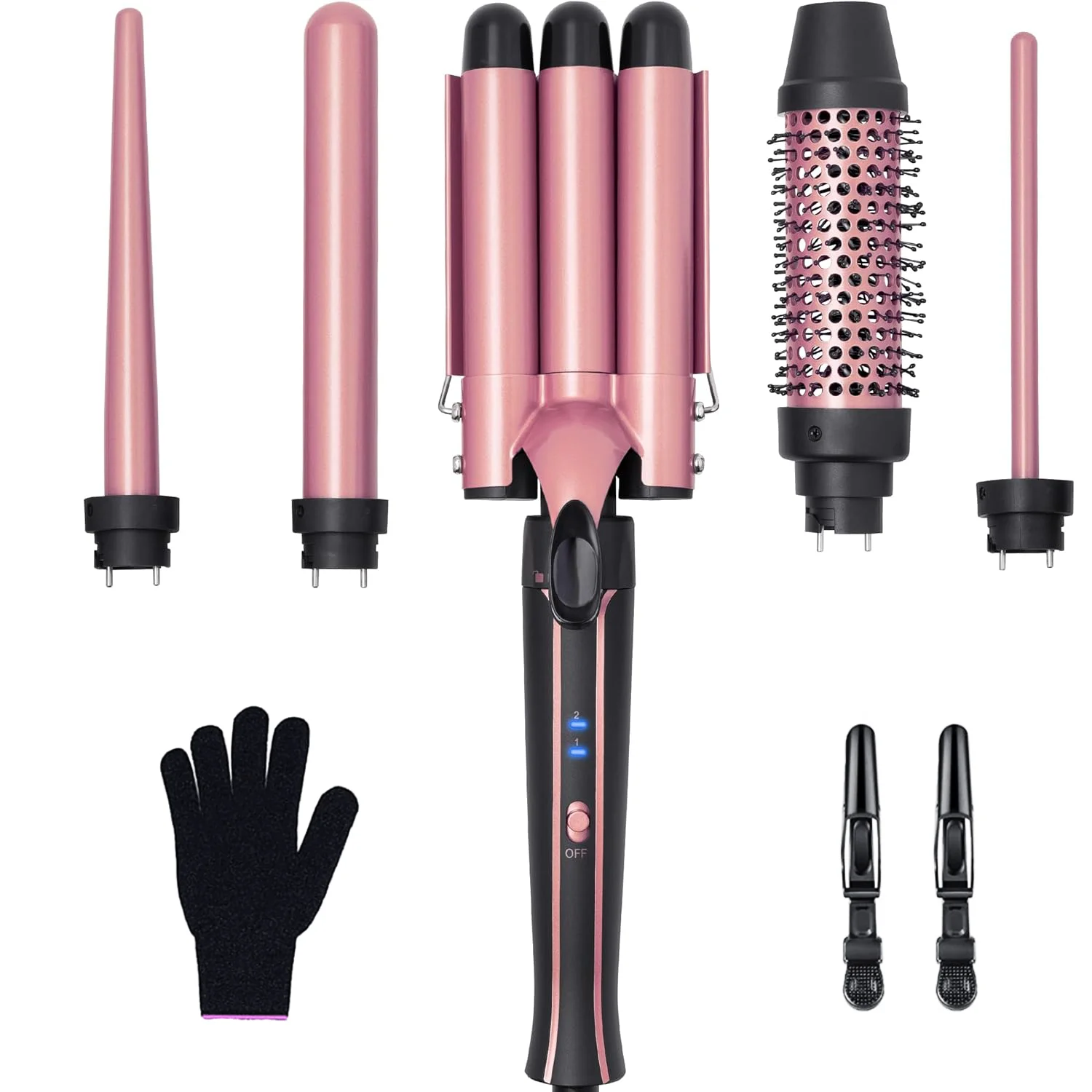 6-in-1 Curling Iron Set – Thermal Brush & 4 Interchangeable Ceramic Barrels with Flat Iron